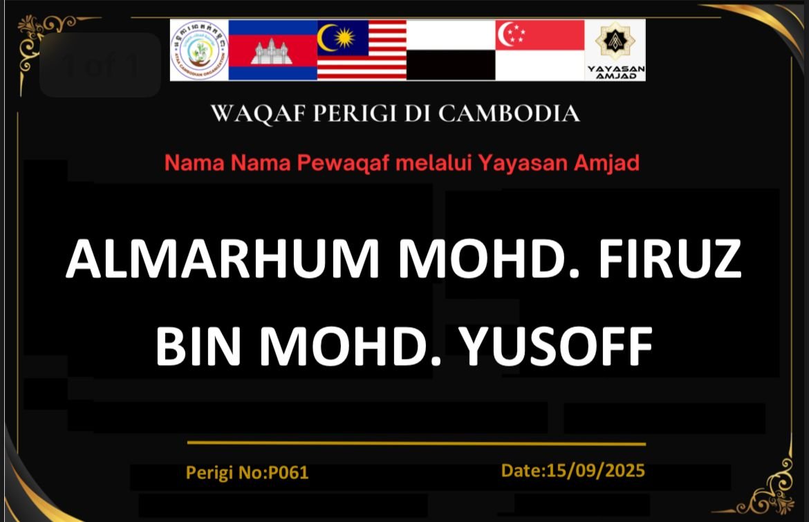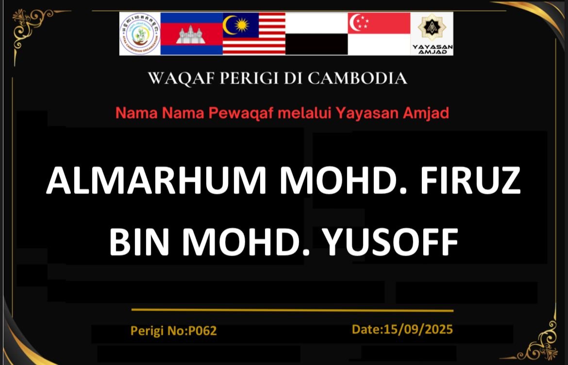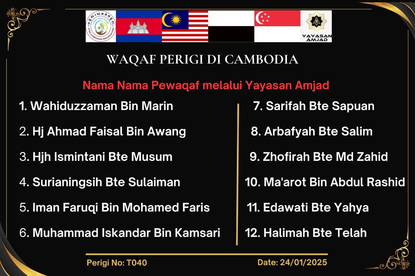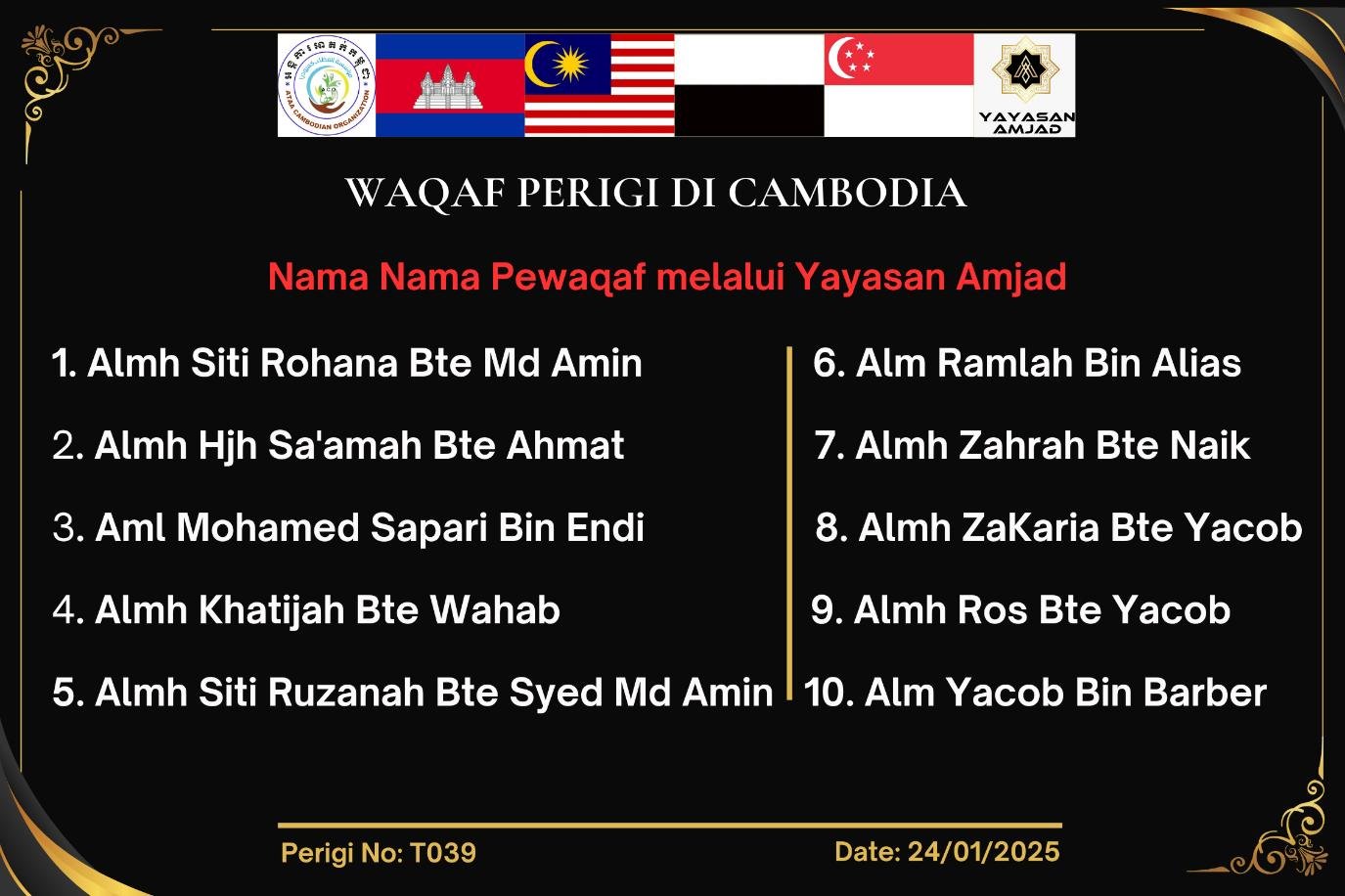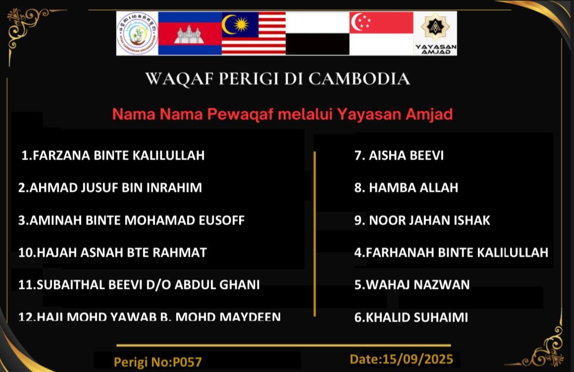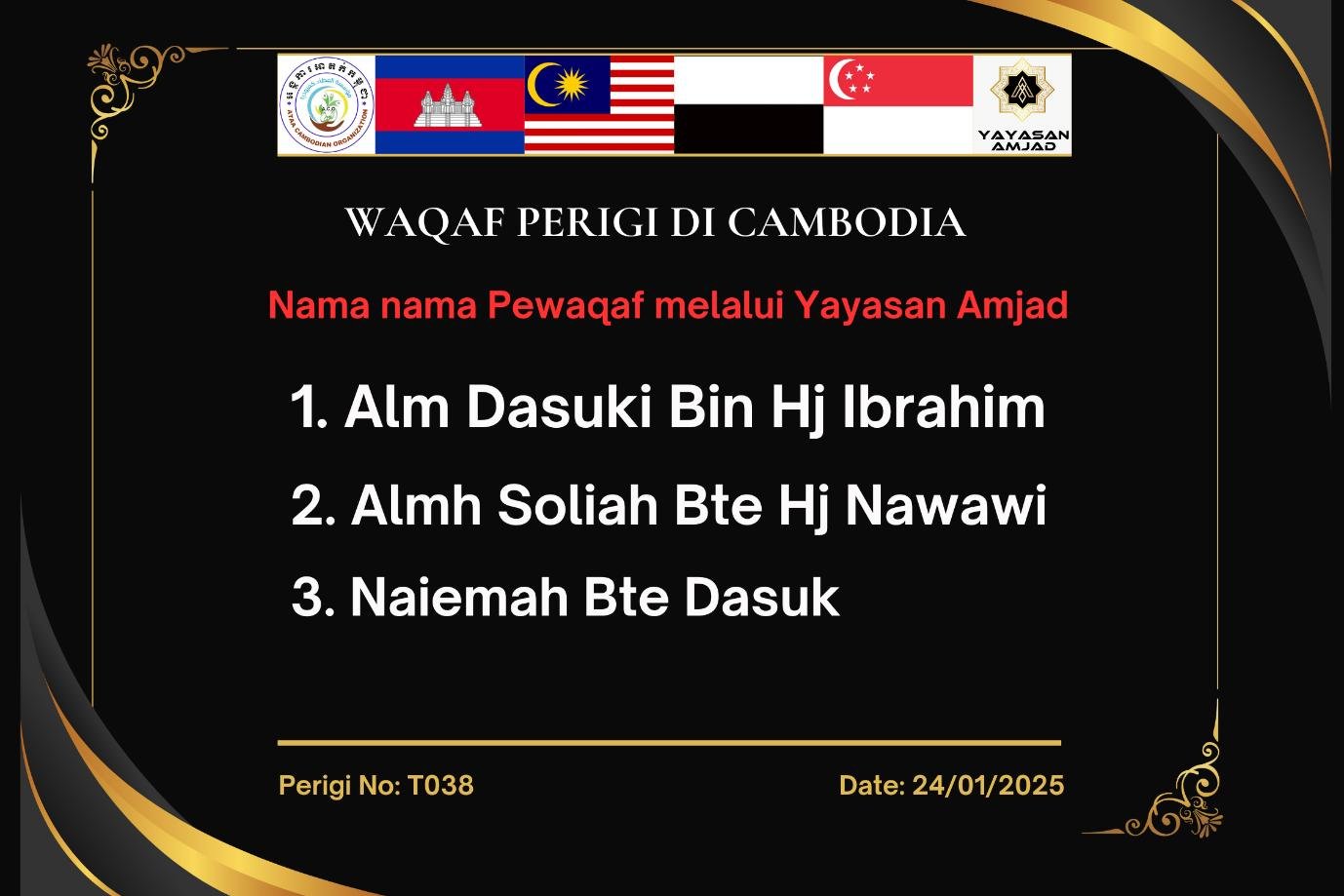 Yayasan Amjad bertindak sebagai wakil bagi menyampaikan sumbangan anda berkerja sama dengan sebuah Yayasan di Kemboja untuk memastikan sehingga terlaksana nya pembinaan perigi-perigi ini. Kami memudahkan urusan anda untuk merebut ganjaran wakaf secara bersama. Peluang sebegini tidak seharusnya disia-siakan, malah ia wajar dikongsi bersama seluruh umat Islam.